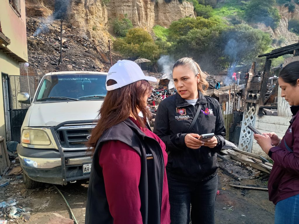 El Gobierno Municipal de Tijuana continuo el domingo 18 de enero con las labores de atención y apoyo a las familias afectadas por el incendio registrado el sábado 17 de enero en la colonia Rancho Las Flores.