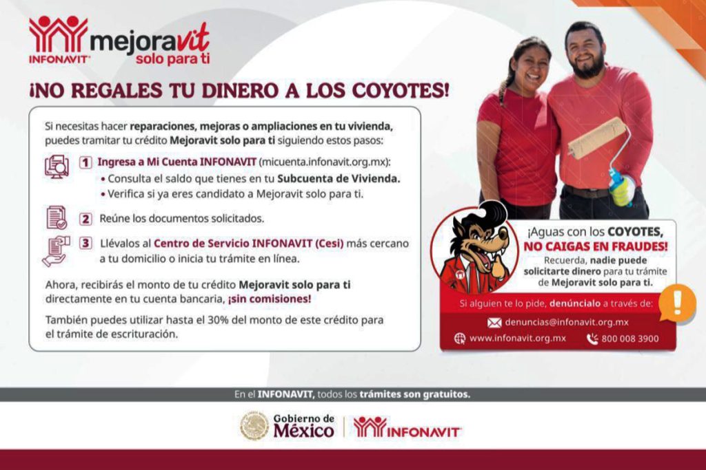 El Instituto del Fondo Nacional de la Vivienda para los Trabajadores (INFONAVIT) informó que los recursos del crédito Mejoravit “solo para ti” ya se depositan directamente en la cuenta bancaria del beneficiario, sin intermediarios.