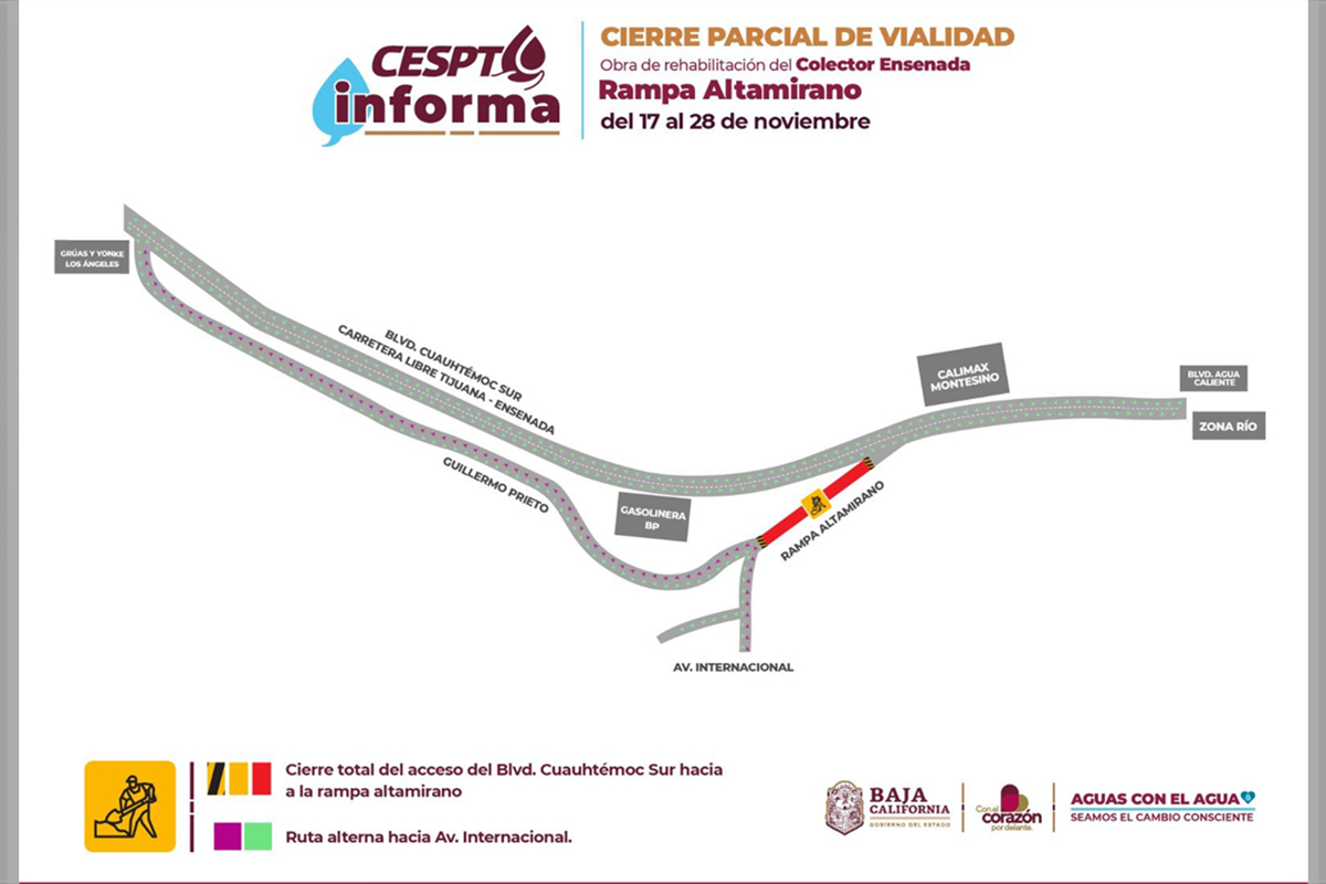 Este lunes 17 de noviembre comenzarán los trabajos de rehabilitación de un tramo del Colector Ensenada, ubicado sobre el bulevar Cuauhtémoc Sur. La obra contempla la renovación de 370 metros lineales de la línea de conducción y requerirá el cierre temporal de vialidades.