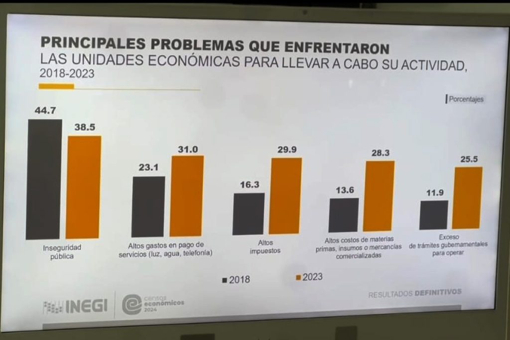 Los Censos Económicos 2024 indicaron que la inseguridad pública representa el mayor obstáculo para el crecimiento empresarial, aunque no el único, pues también fueron señalados los costos elevados, impuestos altos, insumos caros y trámites complejos.