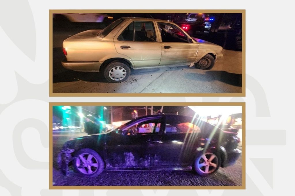 El primer caso ocurrió en la colonia Pinos de Narez, donde una conductora de un Nissan Tsuru ignoró una indicación de alto tras cometer una infracción de tránsito y emprendió la fuga. Durante la persecución perdió el control del vehículo e impactó una patrulla. La mujer continuó huyendo sobre el bulevar Díaz Ordaz y posteriormente intentó escapar a pie junto con un acompañante, logrando los agentes detener a Dulce Monserrat “N”, de 26 años. Al revisar el vehículo, se confirmó que contaba con reporte de robo.
