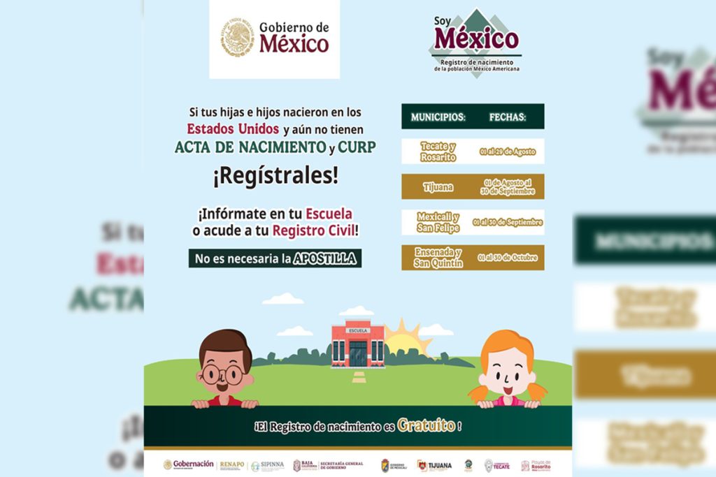 A partir del 1 de agosto iniciará en Baja California la campaña federal “Soy México”, que facilita el trámite de doble nacionalidad a personas nacidas en Estados Unidos de madres y padres mexicanos.