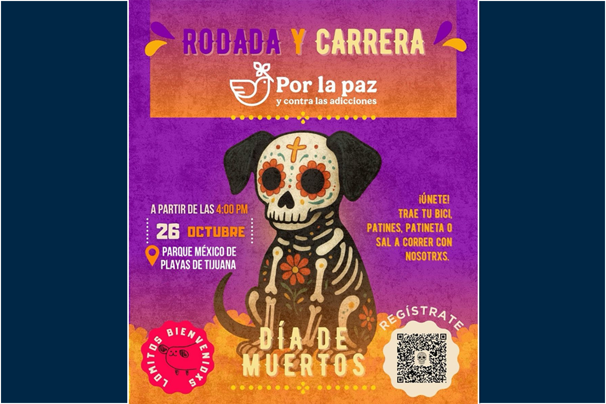 El Gobierno Municipal de Tijuana convocó a las familias a participar en dos actividades recreativas que buscan promover la convivencia y la paz: la “Rodada y Carrera por la Paz contra las Adicciones” y el concurso “Patitas de Fantasía”, que se llevarán a cabo este domingo 26 de octubre en el Parque México, en Playas de Tijuana.