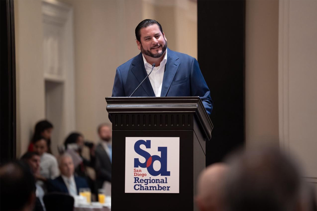 El alcalde agradeció la invitación a Chris Cate, presidente y director ejecutivo de la Cámara de Comercio de San Diego, así como al alcalde de San Diego, Todd Gloria, destacando la disposición de ambos para avanzar en áreas estratégicas de la relación binacional, como desarrollo económico, migración, infraestructura y medio ambiente.