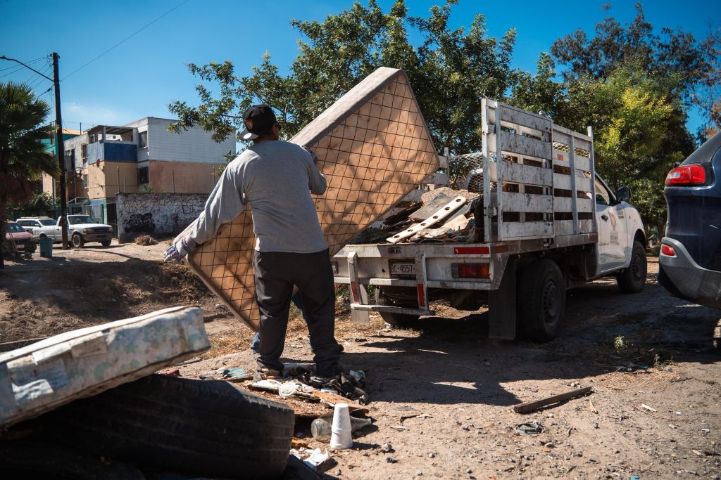 En la colonia Colinas del Florido, de la Delegación La Presa Este, se retiraron alrededor de cinco toneladas de desechos voluminosos y se repararon más de 30 luminarias, acciones que evitarán la formación de basureros clandestinos y mejorarán la seguridad de la zona.