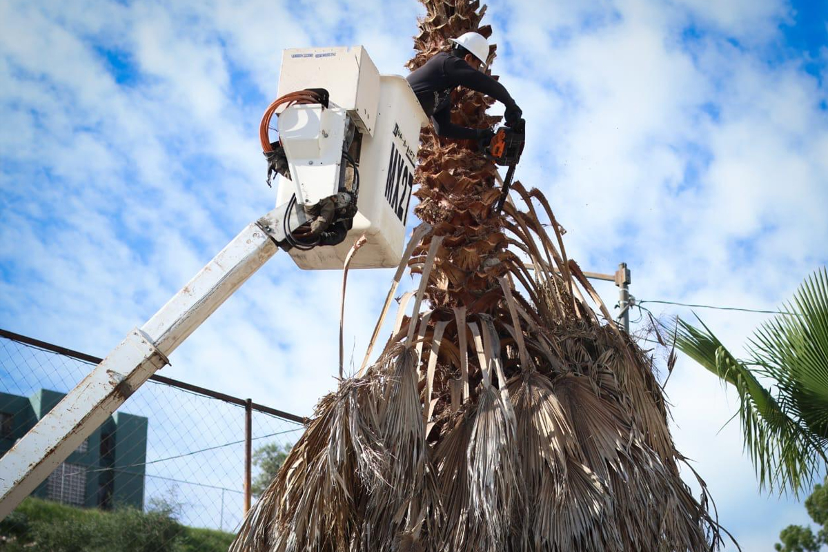 Posteriormente, en la colonia Loma Bonita, fraccionamiento Lomas Verdes, en la delegación La Mesa, se realizaron labores de limpieza y mantenimiento en áreas verdes que abarcaron una superficie aproximada de mil 200 metros cuadrados. Las acciones incluyeron poda de palmas en una cancha de usos múltiples y en un canal pluvial, rehabilitación de juegos infantiles y recolección de 1.5 toneladas de basura, beneficiando a alrededor de mil 500 personas.