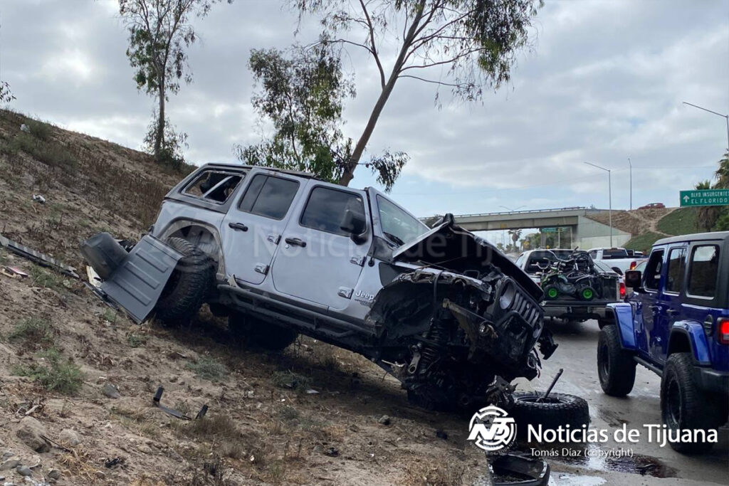 Sin embargo, a la llegada de los oficiales, el responsable de los daños, que de acuerdo a testigos se trataba de un joven en estado de ebriedad, huyó del lugar tras impactar su vehículo Jeep Rubicon de color gris en contra de una camioneta Silverado, propiedad de la CESPT, para posteriormente alojarse sobre el camellón de la canalización del río Tijuana.