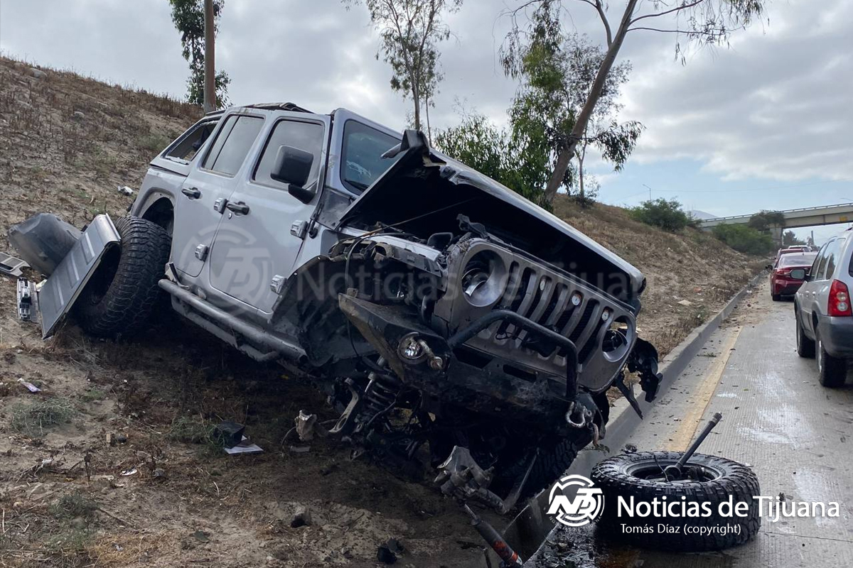 Sin embargo, a la llegada de los oficiales, el responsable de los daños, que de acuerdo a testigos se trataba de un joven en estado de ebriedad, huyó del lugar tras impactar su vehículo Jeep Rubicon de color gris en contra de una camioneta Silverado, propiedad de la CESPT, para posteriormente alojarse sobre el camellón de la canalización del río Tijuana.