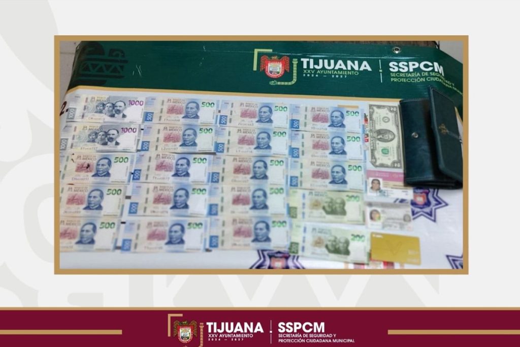 Durante una inspección preventiva, le fue localizada una cartera verde que la víctima reconoció como de su propiedad, la cual contenía dinero en efectivo y documentos personales.