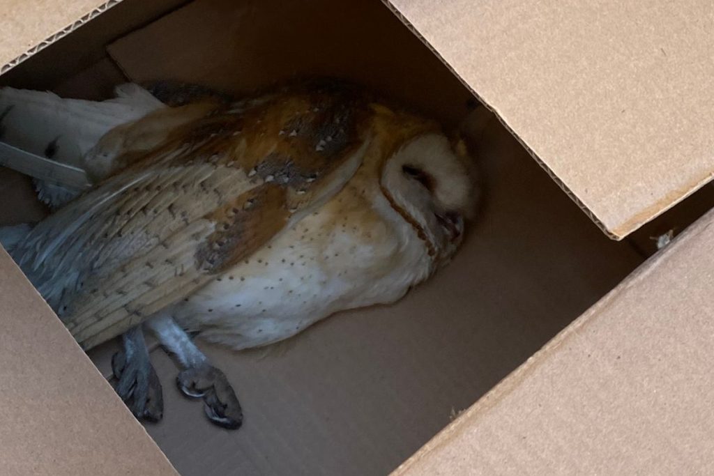 Una lechuza que presentaba una lesión en el área del pico fue resguardada por agentes de la Policía Municipal luego de que ciudadanos solicitaran apoyo durante un recorrido de vigilancia en la delegación San Antonio de los Buenos.