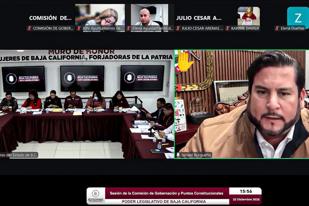 El presidente municipal, Ismael Burgueño Ruiz, participó vía zoom, en la sesión de la Comisión de Gobernación, Legislación y Puntos Constitucionales de la XXV Legislatura de Baja California, donde avaló el proyecto de dictamen para la creación de la Ley para Prevenir, Investigar y Sancionar los Delitos en Materia de Extorsión para el Estado de Baja California.