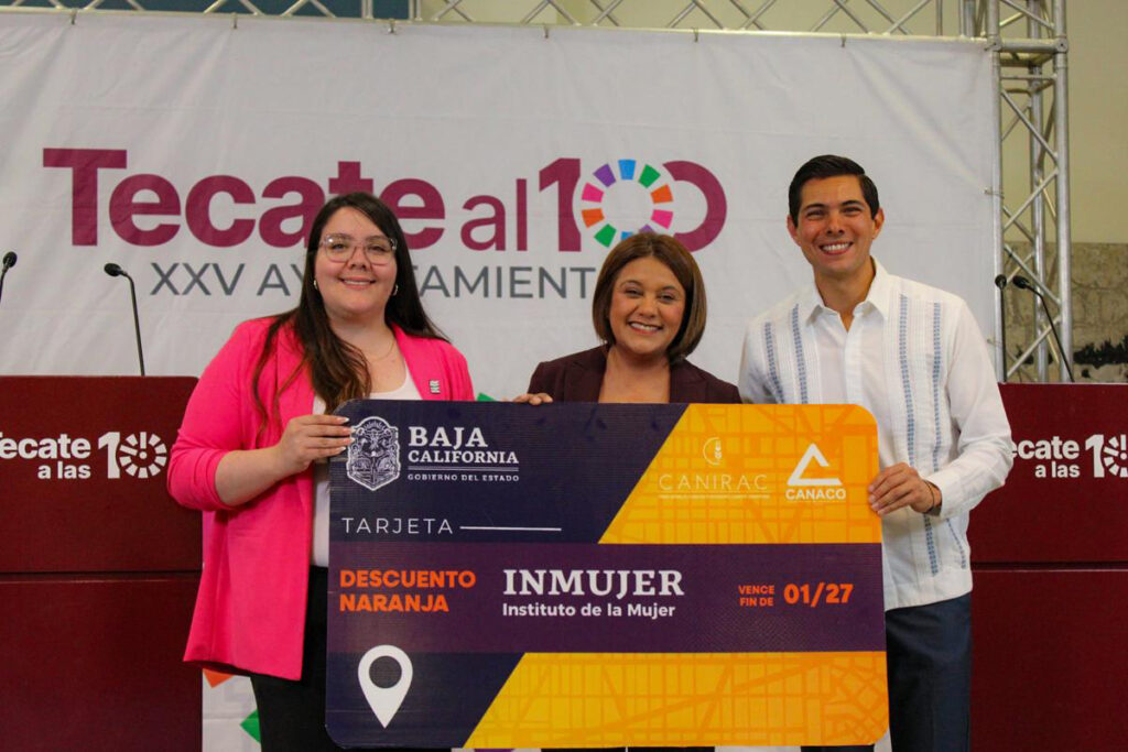 Durante la conferencia matutina del presidente Municipal Román Cota, la directora del Instituto de la Mujer para el Estado de Baja California (INMUJER BC), presentó ante medios de comunicación de Tecate y Tijuana la Tarjeta de Descuento Naranja.