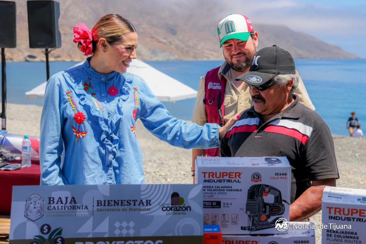 La titular de SEPESCA, Alma Rosa García Juárez, informó que como parte de esta jornada se entregaron apoyos simbólicos a beneficiarios de doce agrupaciones de El Rosario y San Quintín, correspondientes al programa estatal Pescando con el Corazón. Explicó que este esquema consiste en la entrega de 3 mil 750 pesos a más de dos mil personas involucradas en la cadena de producción pesquera y acuícola, con una inversión estatal de 7.5 millones de pesos.
