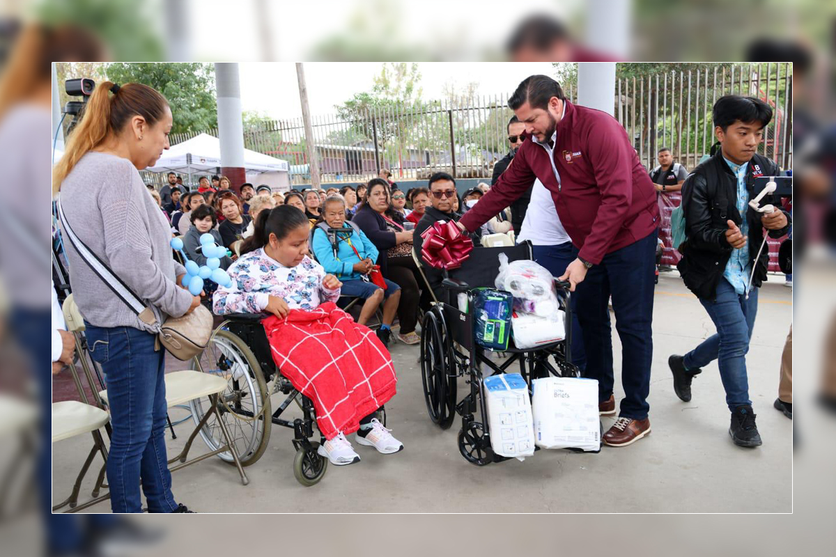 En el marco de la jornada, el primer edil, hizo entrega de una silla de ruedas y un kit de limpieza a la ciudadana Nahomi Alejandra, como parte del compromiso del Gobierno Municipal de atender, de manera directa, las necesidades más sensibles de la comunidad, beneficiando a cerca de 500 personas con los servicios gratuitos.