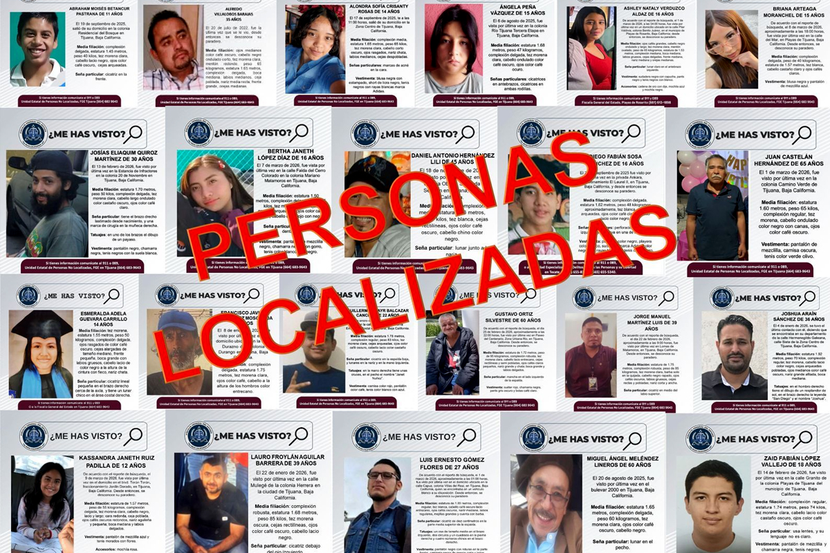 La Fiscalía General del Estado informó que 22 personas reportadas como desaparecidas en Tijuana y Playas de Rosarito fueron localizadas en distintos hechos y todas se encuentran en buen estado de salud.