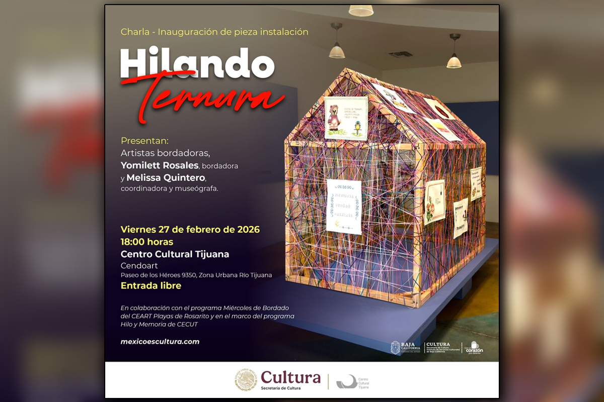 La instalación colectiva Hilando ternura, creada en el CEART Playas de Rosarito, se integrará al proyecto Hilo y Memoria del Centro Cultural Tijuana (CECUT), como parte de una colaboración entre espacios culturales de la región.