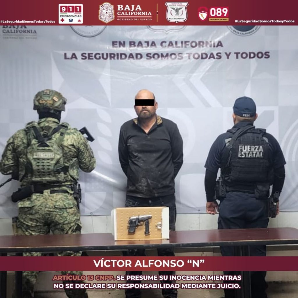 La coordinación entre la Fuerza Estatal de Seguridad Ciudadana y la Secretaría de la Defensa Nacional permitió la detención de un hombre armado la tarde del domingo en Mexicali, luego de una persecución que se originó por conducción irregular en la vía pública.