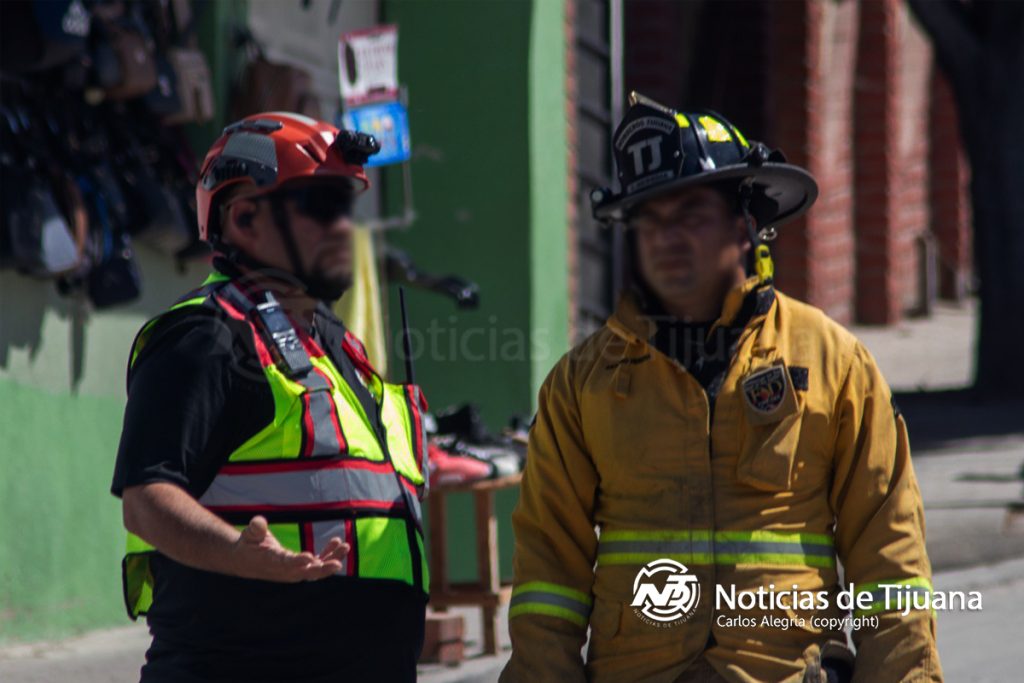 Personal de Protección Civil Municipal también acudió al lugar para realizar la evaluación de riesgos en el inmueble y asegurar la zona, en coordinación con las demás corporaciones presentes, tras concluirse las labores de rescate.