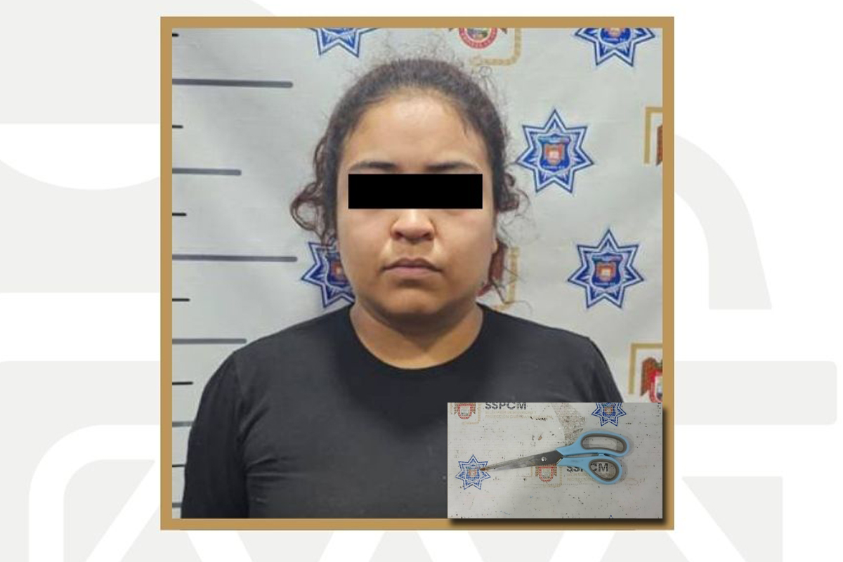 Agentes de la Policía Municipal atendieron un reporte vía central de radio sobre una persona lesionada con arma blanca en el fraccionamiento Viñas del Mar, logrando realizar la detención de la agresora.