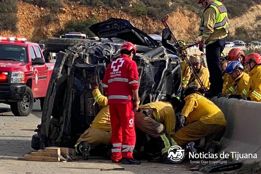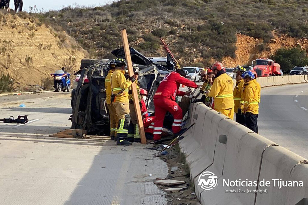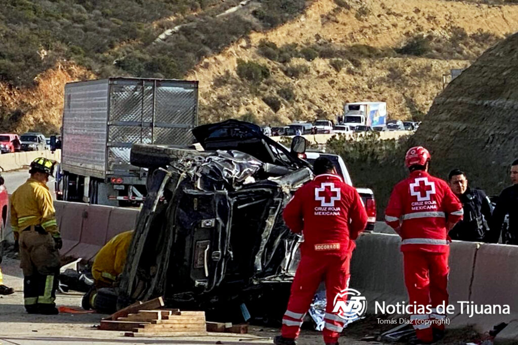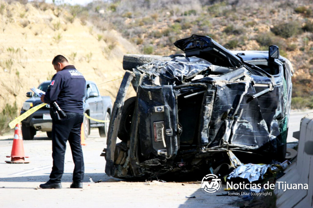Tijuana BC. -Cerca del letrero “Bienvenidos a Rosarito” a la altura del Fraccionamiento Natura, una Honda Pilot color gris oscuro, sufrió una volcadura perdiendo el control e impactando contra los muros de contención.