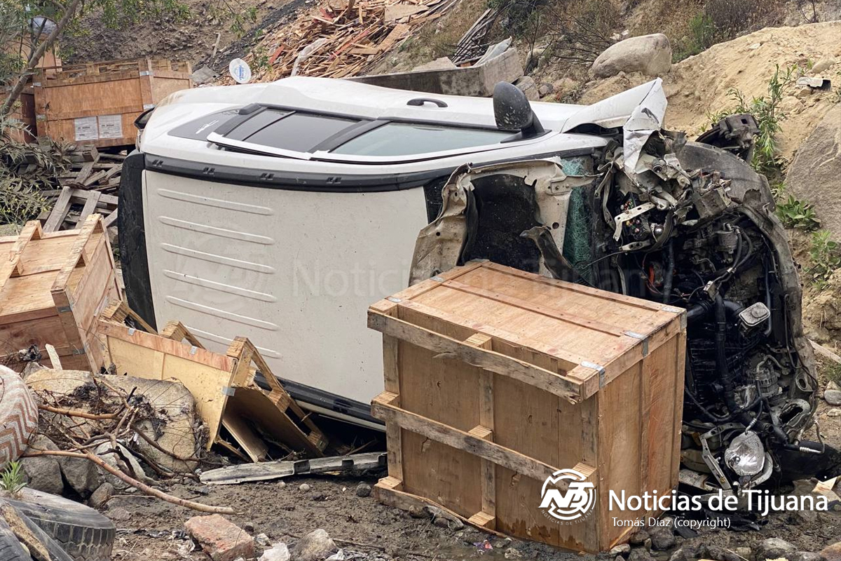 Una mujer de aproximadamente 40 años, conductora de una camioneta Jeep Compass con placas nacionales, acompañada por un menor de edad, sufrió una fuerte volcadura tras caer a un barranco de 25 metros de profundidad debido a un derrame de aguas negras en la vía.