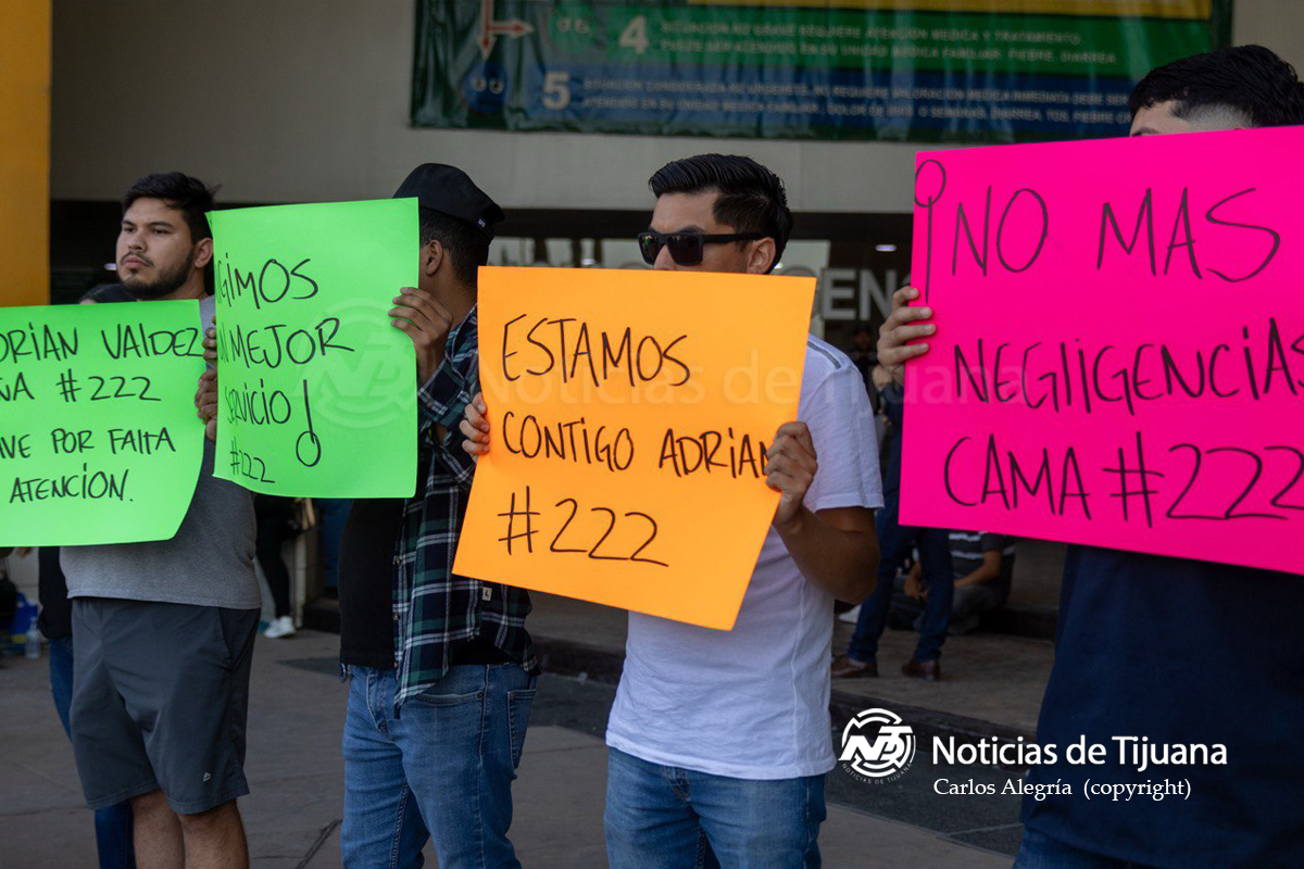 Con pancartas que advierten, “exigimos un mejor servicio, pero, sobre todo, no dejen morir a Adrián Valdés”, familiares y amigos se manifestaron pacíficamente la tarde de este martes 15 de julio afuera del Hospital General Regional 1 del IMSS, en la tercera etapa del Río Tijuana, para denunciar una presunta negligencia médica que ha dejado a un joven de 24 años “entre la vida y la muerte”.