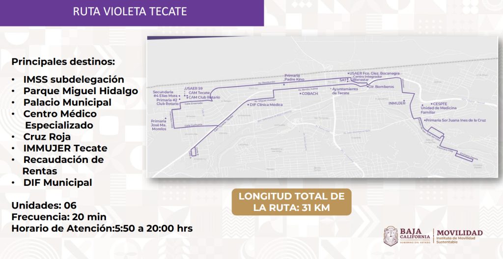 Actualmente, en Baja California operan 534 rutas de transporte público que conectan colonias con hospitales, centros educativos, oficinas gubernamentales y zonas comerciales. Las rutas pueden consultarse en las redes sociales oficiales del Instituto de Movilidad Sustentable.