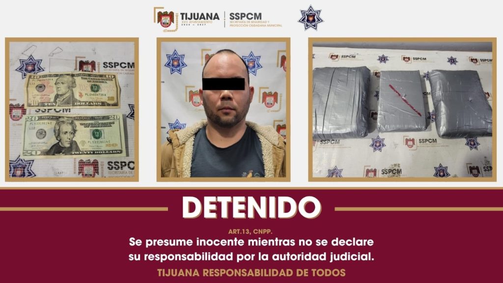 Los agentes procedieron a su aseguramiento inmediato y lo identificaron como Jorge Andrés “N”, de 36 años, originario de Los Ángeles, California. Durante una inspección preventiva, le encontraron tres paquetes sujetos a la cintura, que contenían un polvo blanco con características similares a la cocaína.