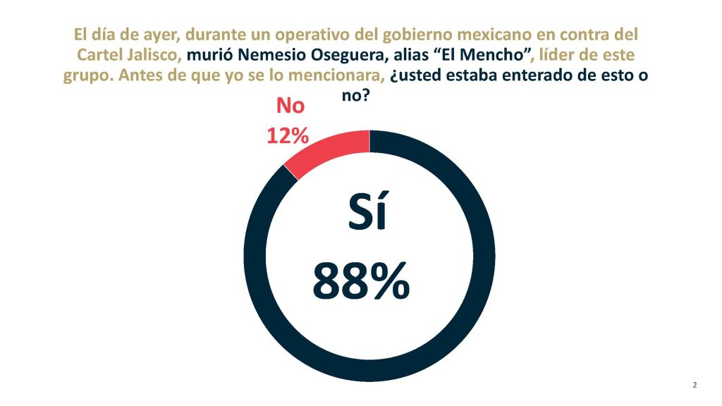Una reciente encuesta revela una amplia difusión y una percepción mayoritariamente positiva sobre el operativo realizado el pasado fin de semana por el Gobierno Federal en Jalisco.