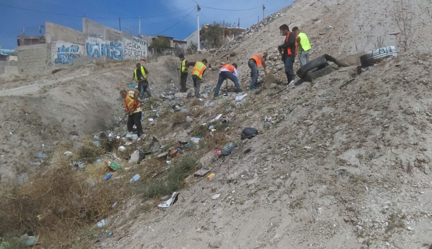Recolectaron poco más de 7 toneladas de basura, realizaron trabajos de deshierbe en 670 metros cuadrados y barrieron 7 mil 370 metros, durante la jornada de limpieza impulsada por la Secretaría de Seguridad Pública Municipal de Tijuana (SSPM).