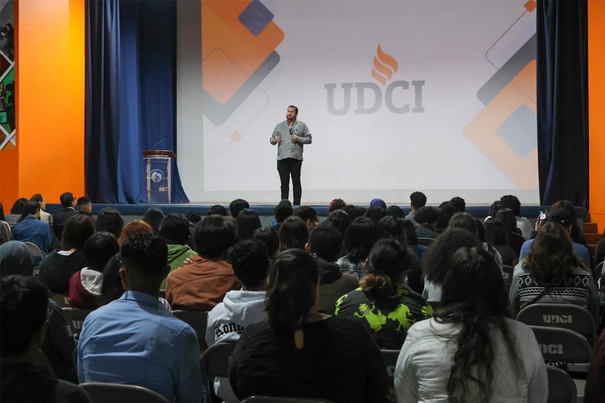 El presidente municipal, Ismael Burgueño Ruiz, visitó la Universidad de las Californias Internacional (UDCI), donde dialogó con estudiantes y directivos sobre los avances alcanzados en su administración, así como los programas impulsados para fortalecer la participación de la juventud en el desarrollo de la ciudad.