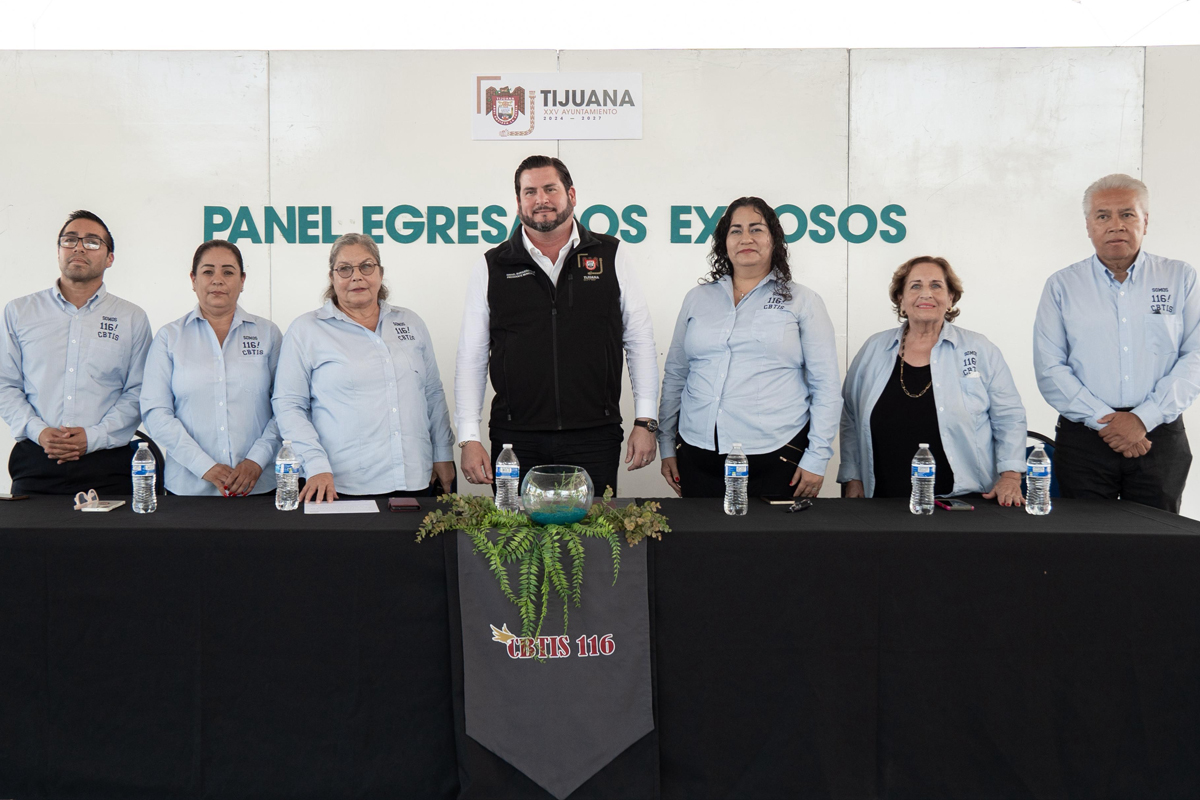 En el marco del 47 aniversario del CBTis No. 116, el presidente municipal, Ismael Burgueño Ruiz, participó en el Panel de Egresados Exitosos, donde compartió con las y los estudiantes de este plantel su experiencia como alumno de esta institución, así como los valores que lo formaron y lo impulsaron a convertirse en presidente municipal de Tijuana.