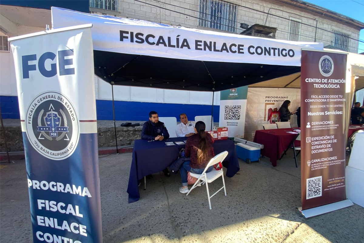 Durante la actividad, personal de la Fiscalía Regional de Tijuana instaló el módulo “Fiscal Enlace Contigo”, encabezado por Benito Velázquez Hernández, a través del cual se ofreció orientación y asesoría en temas relacionados con la procuración de justicia.