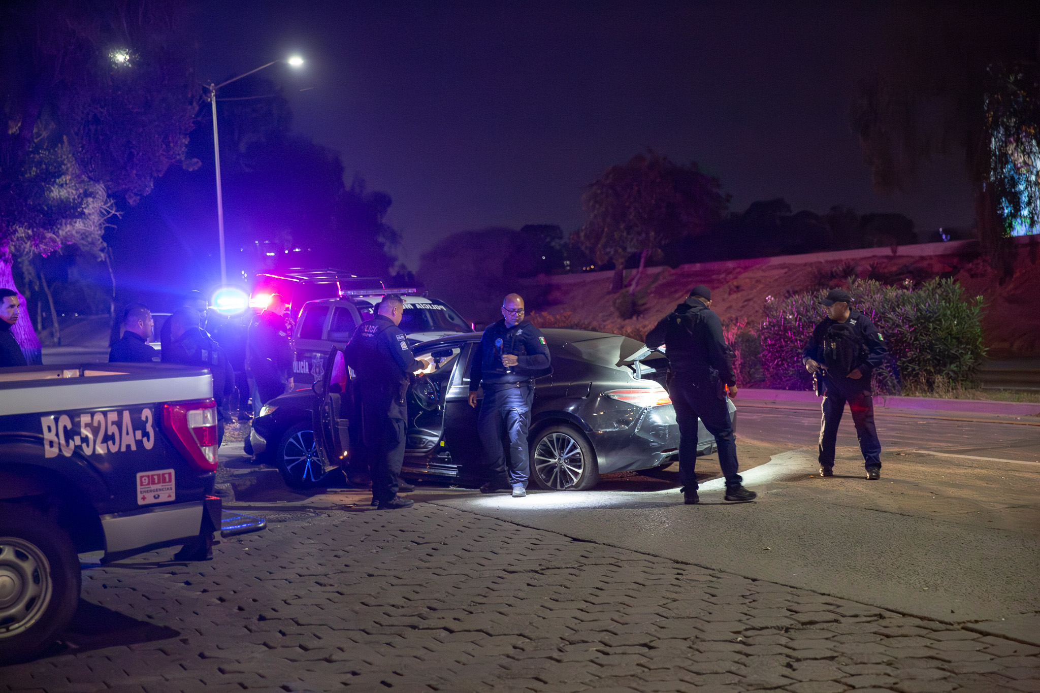 El vehículo, un Toyota Camry negro con placas de California y vidrios polarizados, provocó un operativo que se extendió por al menos 15 minutos a través de diversas vialidades.
