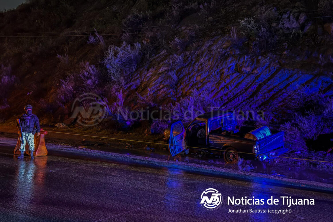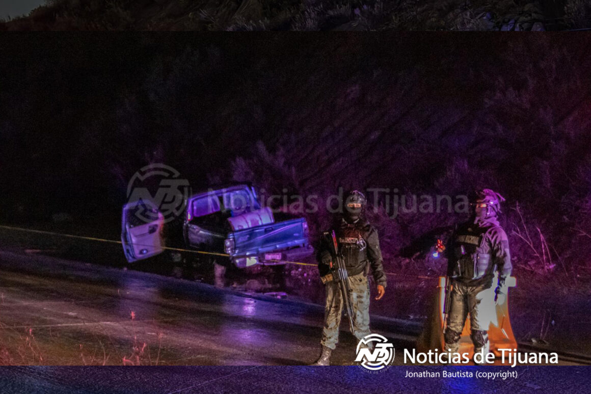 Luego de una fuerte persecución que inició en Rosarito, el conductor de un vehículo tipo pick up marca Ranger se impactó contra un cerro sobre el bulevar 2000 a la altura del Fraccionamiento Puerta Plata. Después de la inspección al vehículo, se le encontró que transportaba un cuerpo humano sin vida.