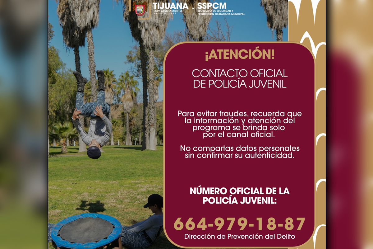 La SSPCM informó que el único medio oficial para solicitar información o realizar inscripciones es el número telefónico 664 979 18 87, correspondiente a la Dirección de Prevención del Delito. Se recomienda no compartir datos personales, escolares o familiares a través de números no verificados, con el fin de evitar fraudes o el uso indebido de información.