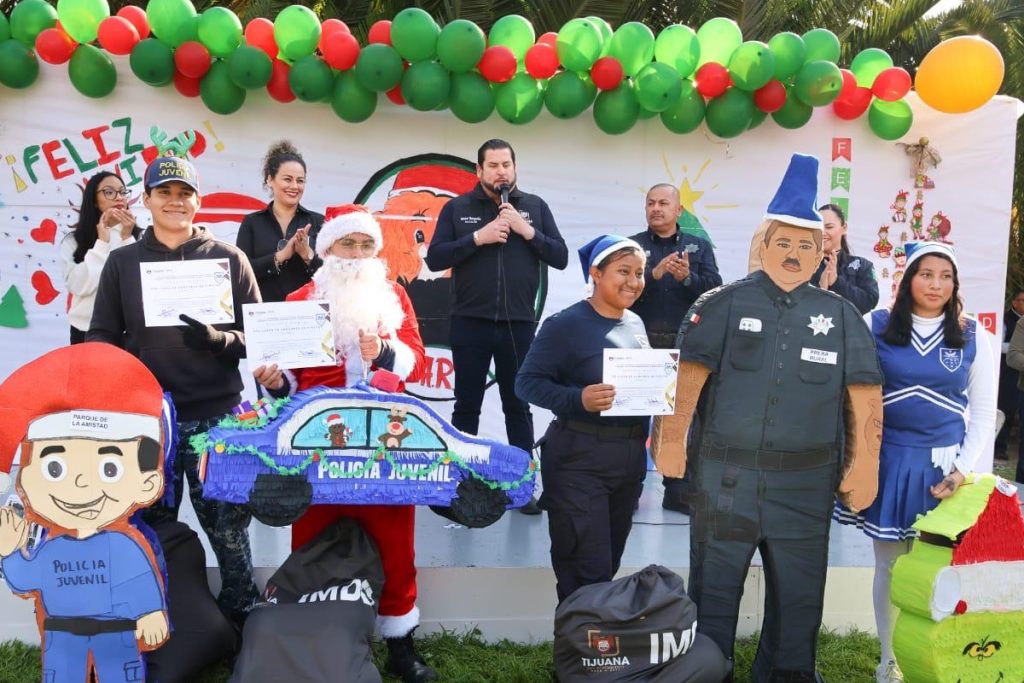 El alcalde de Tijuana, Ismael Burgueño Ruiz, convivió con niñas, niños y jóvenes durante la posada 2025 de la Policía Juvenil, en la que participaron integrantes de las 16 unidades que conforman esta agrupación. El evento se realizó en el Parque Morelos.