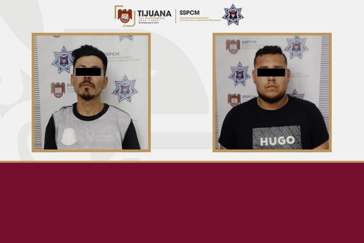 Elementos de la Policía Municipal de Tijuana lograron la detención de dos individuos identificados como generadores de violencia en la colonia Oaxaca, quienes además fueron sorprendidos en posesión de sustancias ilícitas, así lo informó la Secretaría de Seguridad y Protección Ciudadana Municipal (SSPCM).