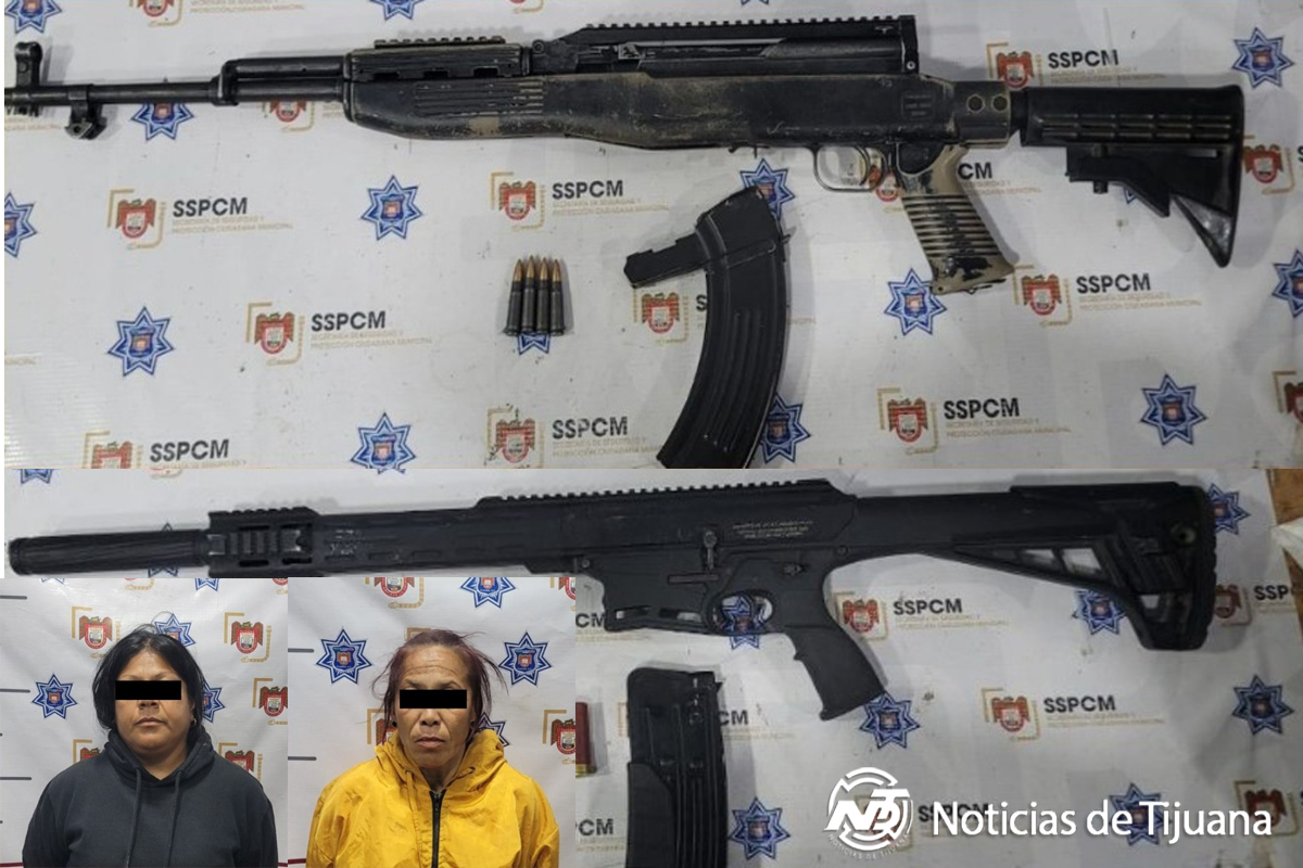 Tijuana, B.C.- Dos mujeres se encuentran bajo detención en las instalaciones de la Fiscalía General del Estado (FGE) luego de ser sorprendidas en posesión de tres armas largas, durante un recorrido de vigilancia de la Policía Municipal por la colonia Cañón Centenario.