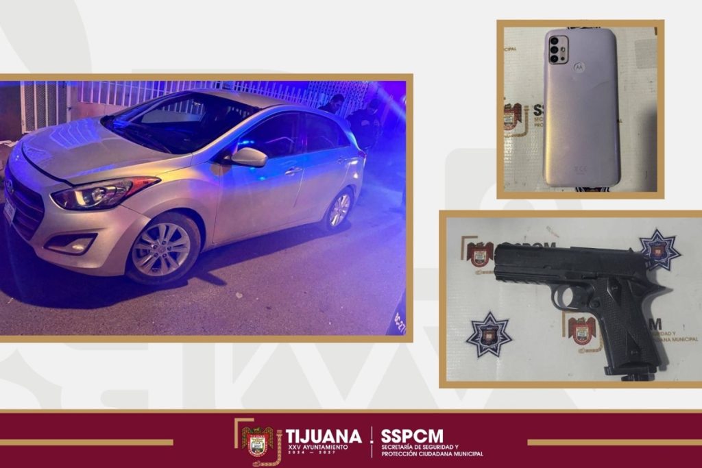 En el lugar, el afectado identificó plenamente a los individuos, el vehículo y un teléfono celular como de su propiedad. Los agentes aseguraron a Jesús “N”, quien conducía el automóvil, y a José Antonio “N”, a quien se le localizó un arma de utilería que presuntamente fue utilizada durante el asalto.