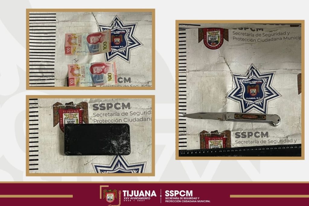 Al realizarle una revisión, le encontraron un arma blanca, así como el dinero y el teléfono reportados, los cuales fueron reconocidos por el afectado. El detenido fue trasladado a la Fiscalía General del Estado de Baja California para continuar con el proceso correspondiente.