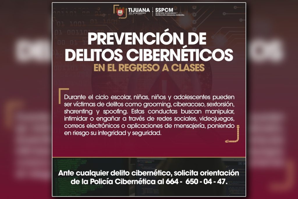 Asimismo, se pidió a madres y padres estar atentos a cambios en el comportamiento digital de sus hijas e hijos y actuar de inmediato ante cualquier situación sospechosa. Los delitos cibernéticos pueden ser reportados a la Policía Cibernética Municipal al número 664 650 04 47, donde se brinda orientación y atención especializada.