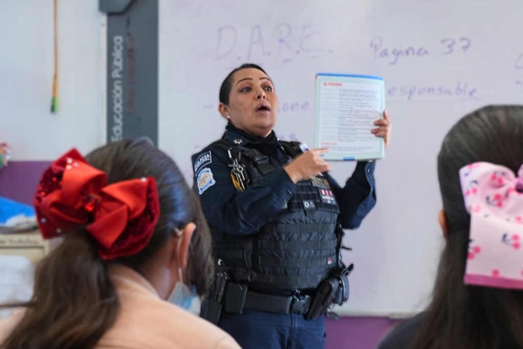 La Secretaría de Seguridad y Protección Ciudadana Municipal (SSPCM) impartió la primera lección del programa D.A.R.E. en la Escuela Primaria Caudillo del Sur, ubicada en la colonia 3 de Octubre, donde se benefició a 62 estudiantes de quinto y sexto grado.