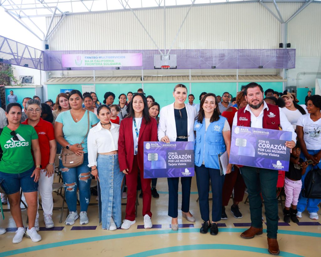 En otra actividad, la gobernadora Marina del Pilar realizó la entrega de Tarjetas Violeta a 50 mujeres refugiadas y solicitantes de asilo provenientes de ocho países de Centro y Sudamérica, que cuentan con la asistencia del Centro Multiservicios Baja California “Frontera Solidaria” ubicado en las instalaciones del Proyecto Salesiano en Tijuana, que cuenta con la colaboración de la Comisión Mexicana de Ayuda a Refugiados, y la Agencia de la ONU para los Refugiados (ACNUR).