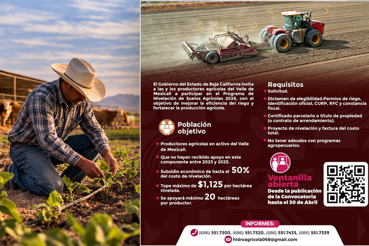 Productores y productoras del campo en Baja California ya pueden registrarse en los programas de apoyo que estarán vigentes durante 2026, con los que se busca fortalecer las actividades agrícolas y ganaderas en la entidad.
