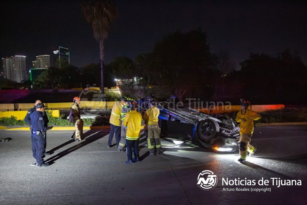 El percance ocurrió sobre el puente que conecta con el bulevar Paseo de los Héroes, a unos metros de la tienda Costco Zona Río, donde automovilistas reportaron la volcadura de un automóvil con una persona prensada.
