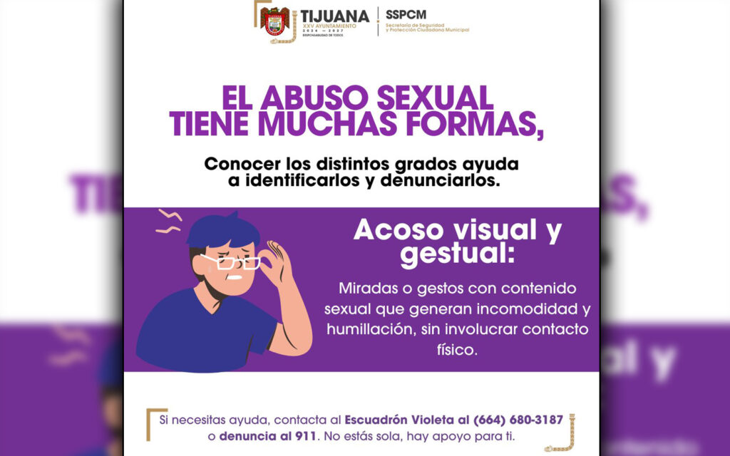La SSPCM hace un recordatorio que cualquier persona que viva una situación de violencia o abuso sexual puede recibir atención inmediata, orientación y acompañamiento especializado a través del Escuadrón Violeta, comunicándose al teléfono 664 680 31 87.