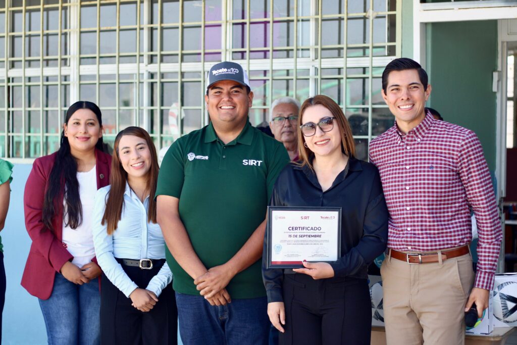 Durante el evento, se entregó a la institución educativa la certificación como “Escuela Verde”, al haber concluido satisfactoriamente la capacitación impartida por el equipo de Servicios Integrales de Residuos de Tecate (SIRT), iniciativa que impulsa la educación ambiental y el reciclaje responsable. Como parte de este reconocimiento, se entregaron cuatro contenedores de separación de residuos, para que alumnos, docentes y personal administrativo contribuyan activamente al programa de reciclaje municipal.