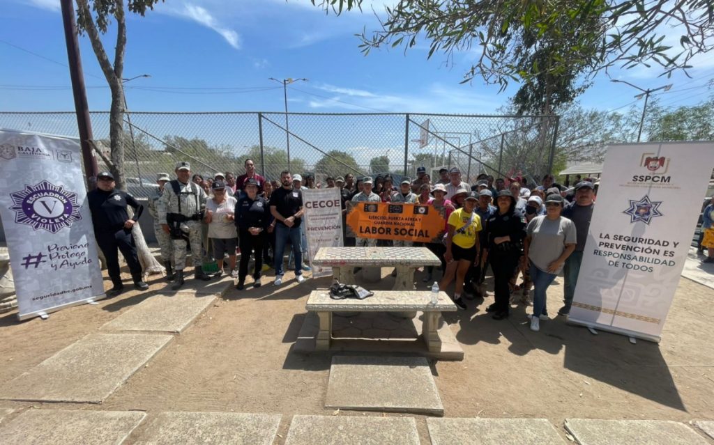 Esta acción se realizó en coordinación con la Secretaría de Seguridad Ciudadana de Baja California (SSCBC), el Escuadrón Violeta del Estado, la Guardia Nacional, así como el apoyo de vecinos de la zona, quienes se sumaron a la rehabilitación del área que presentaba acumulación de basura y pintas que afectaban la imagen urbana.