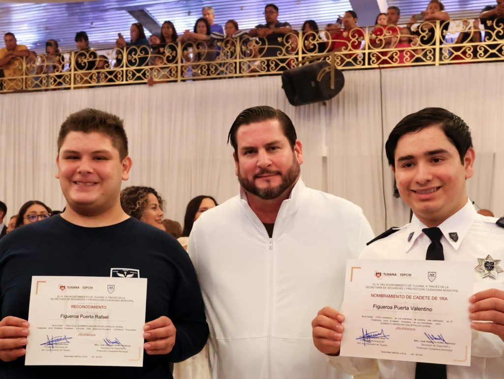 “Veo en su rostro el resultado de ese gran trabajo y esfuerzo; veo disciplina, carácter y un gran corazón. Veo a grandes ciudadanos que son ejemplo de crecimiento. Ustedes ya están haciendo historia en Tijuana”, expresó Burgueño Ruiz dirigiéndose a los cadetes.